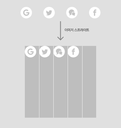웹의 경우에서는 여러 개의 이미지를 하나의 이미지로 만들어 놓는 것"을 의미"한다 아래는 예시입니다.
